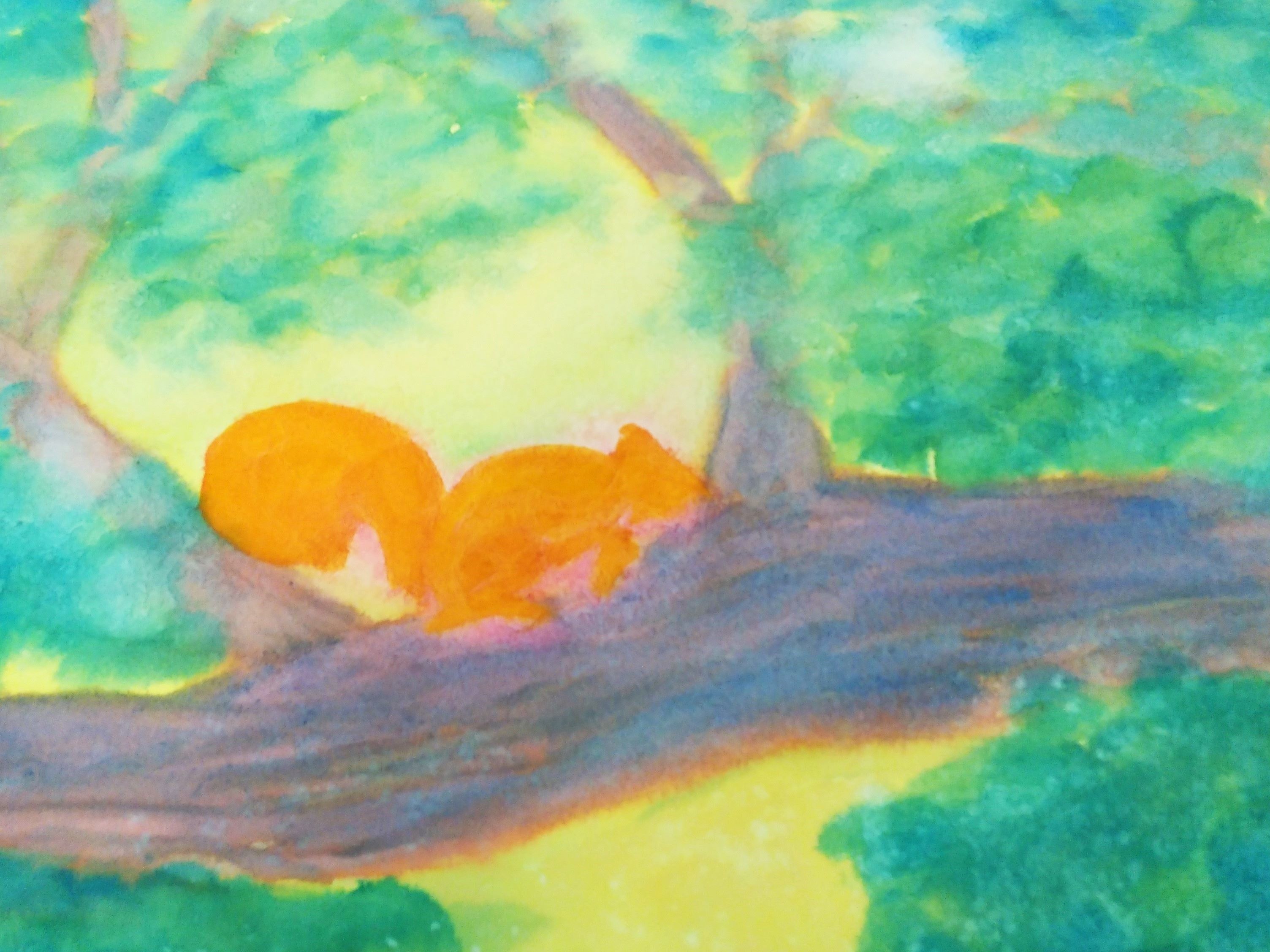 Como podéis observar en las pinturas, las formas empiezan a definirse y a ser más concretas. Es muy importante crear primero el fondo, que es el contexto donde vive el animal que se va a representar. Entre los colores de ese ambiente surgirá casi por si sola la imagen del animal en cuestión.
