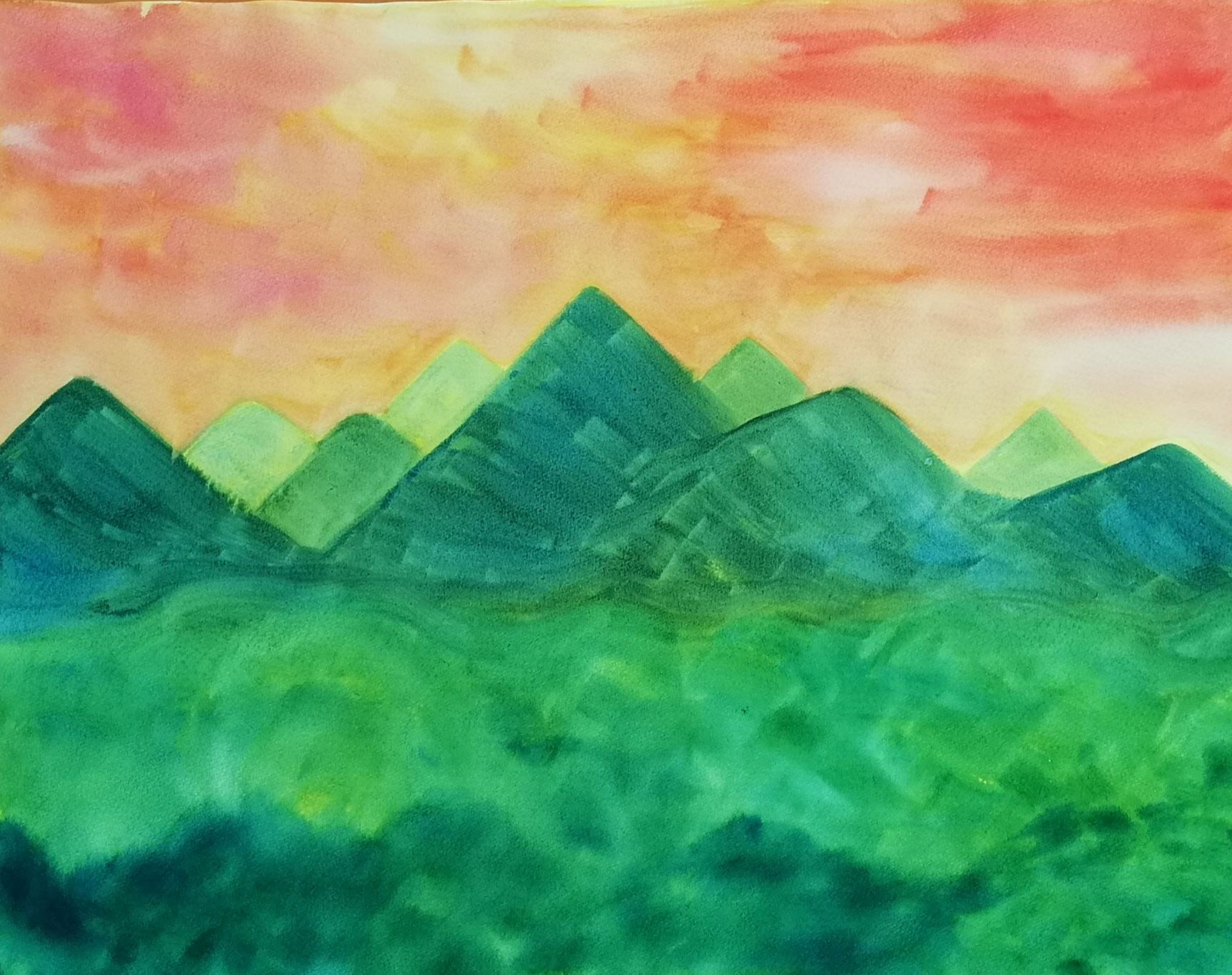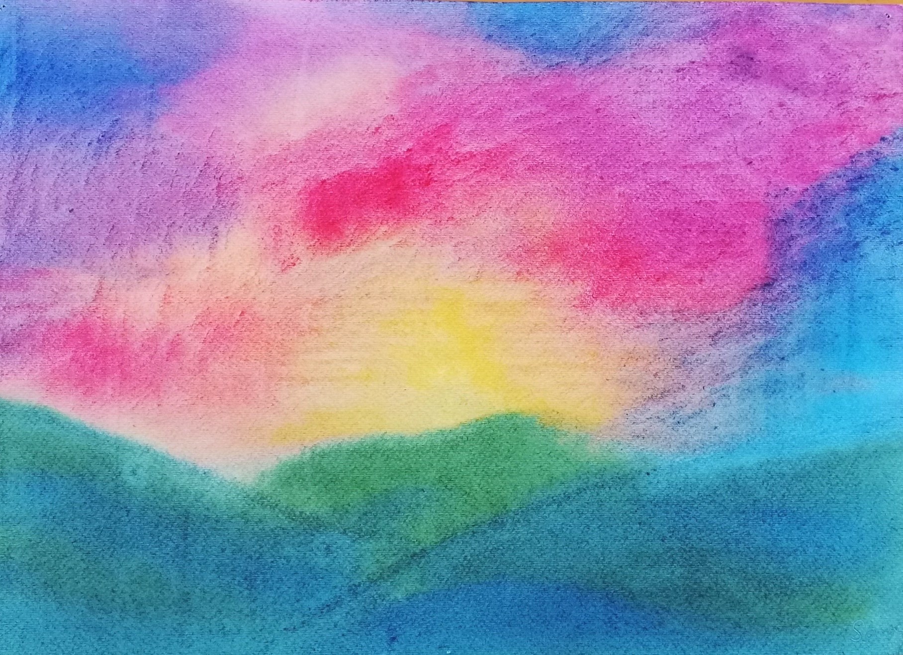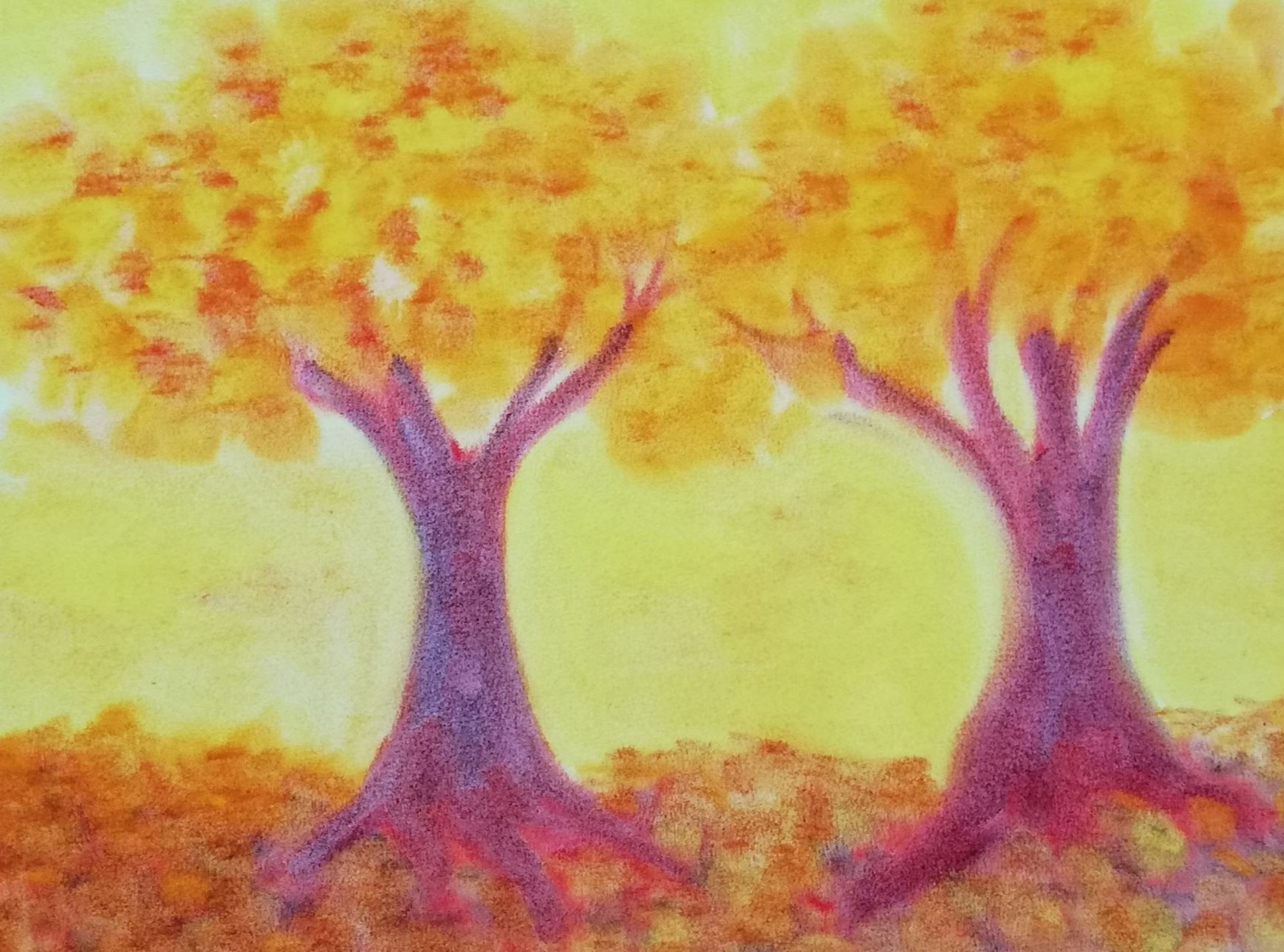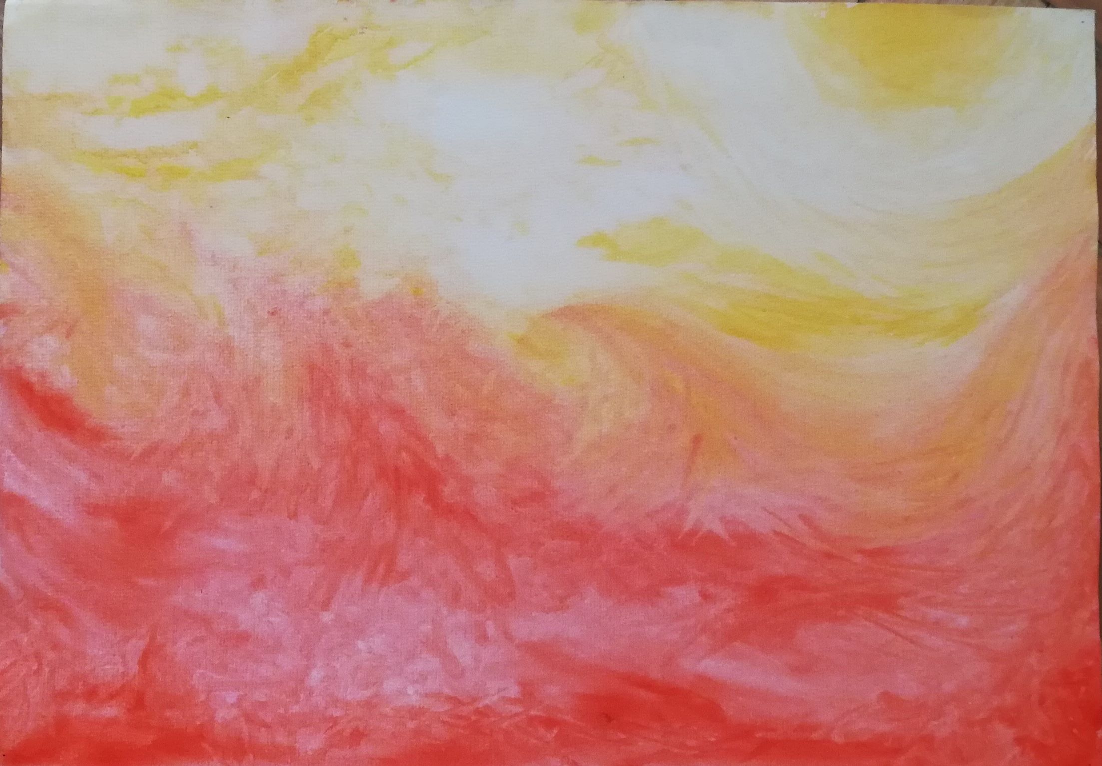 En la segunda clase se añade el amarillo dorado y el rojo cadmio a la paleta de colores. Con esta novedad, se pueden combinar colores cercanos en una misma pintura para apreciar las sutilezas que los diferencian.