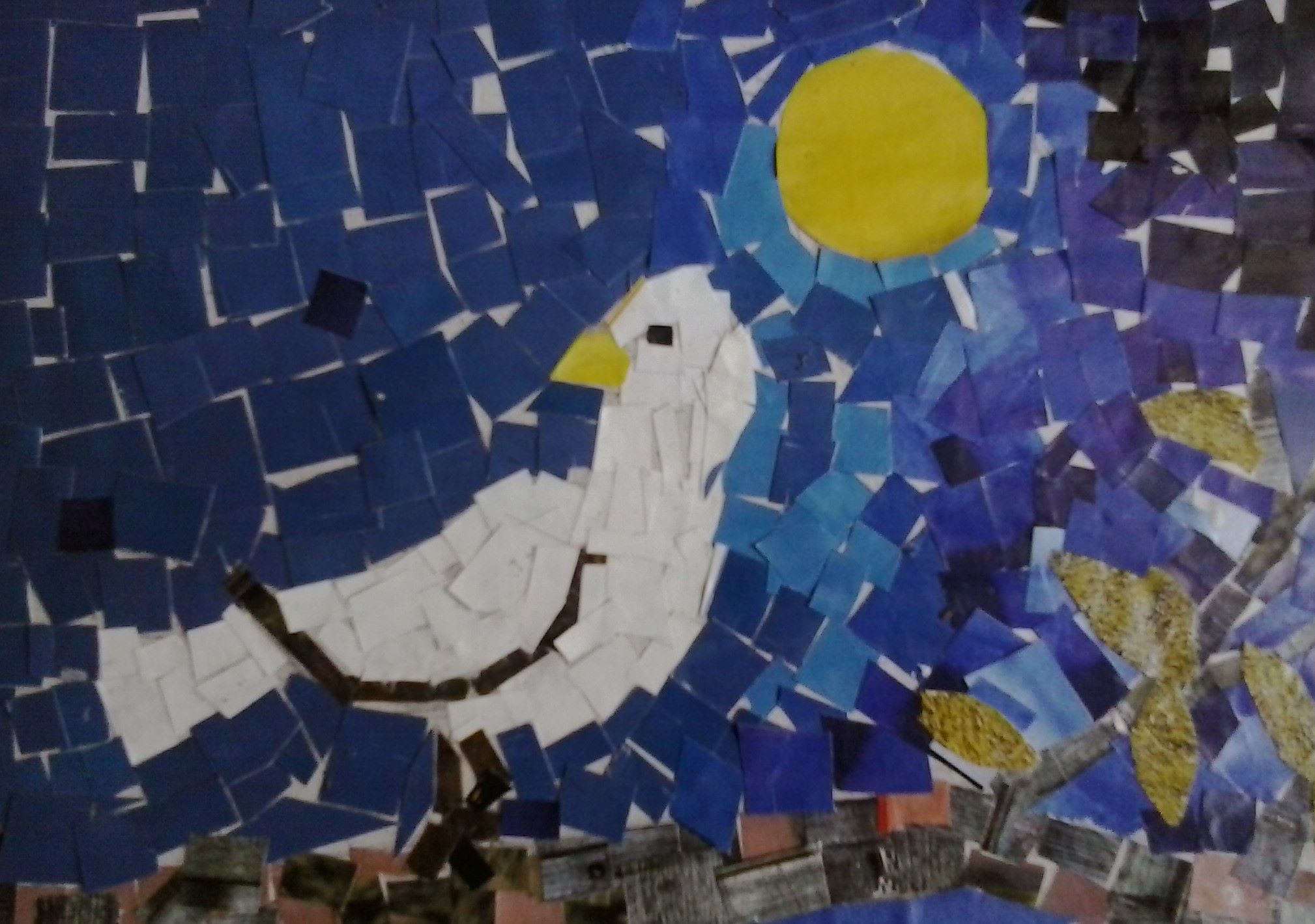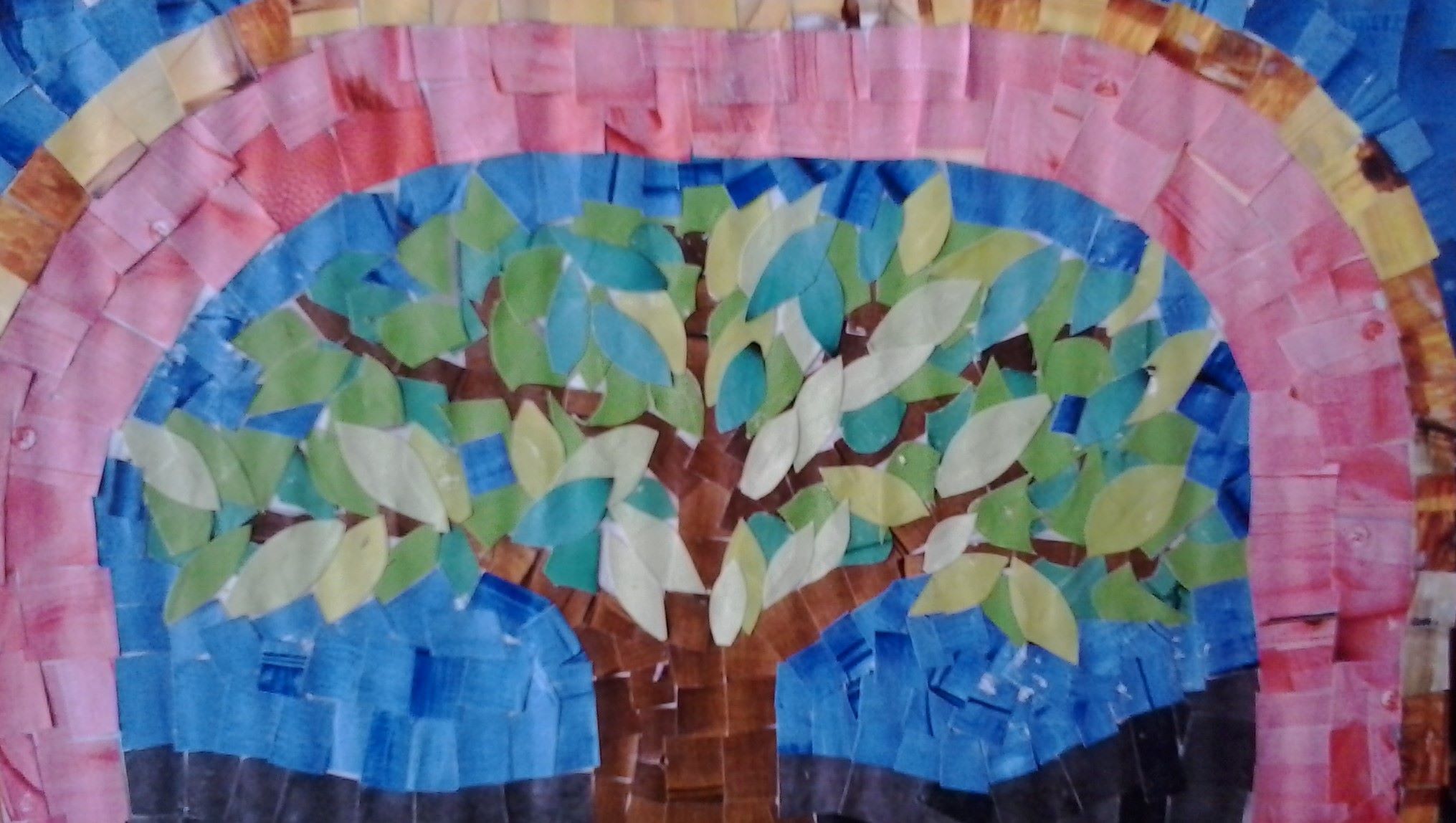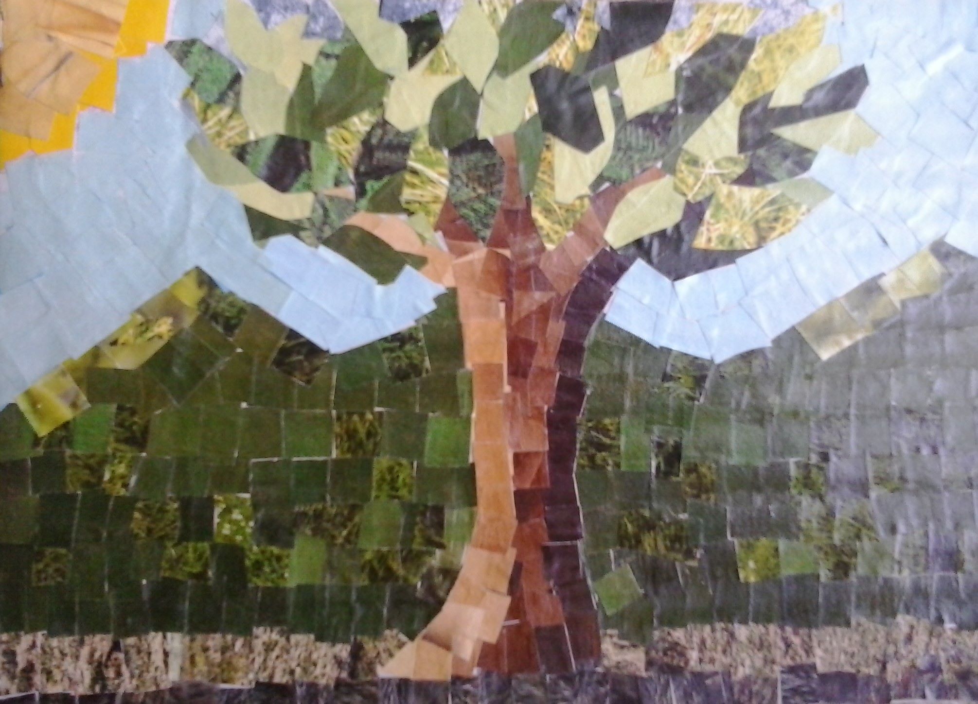 Los trabajos de collage que podéis intentan reproducir la técnica del mosaico romano. Es una actividad que se puede realizar justamente para acompañar el periodo de historia de Roma que se imparte en este curso.