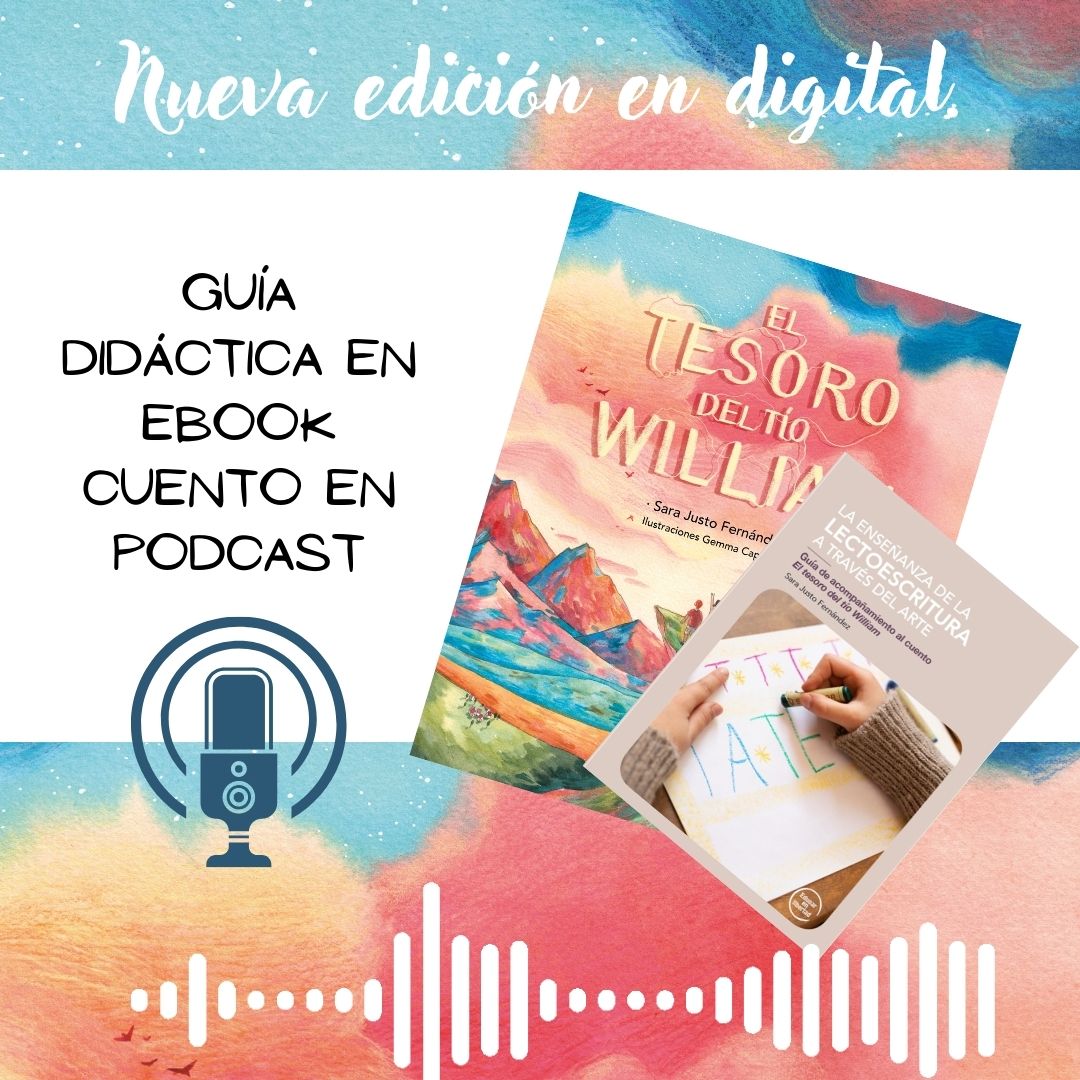Este pack digital para aprender a acompañar el descubrimiento de la lectura y la escritura incluye: La guía didáctica «La enseñanza de la lectoescritura a través del arte» en formato ebook. El acceso a la versión online del cuento»El tesoro del tío William», que consta del podcast para poder escuchar el cuento capítulo a capítulo y las ilustraciones que hice para mis alumnos cuando inventé el cuento. *Atención: no contiene los libros impresos, pero sí el texto completo para leer online.